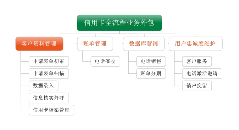瀚海信用卡全流程業(yè)務(wù)外部服務(wù)涵蓋銀行信用卡用戶資料管理、銀行信用卡用戶忠誠度維護(hù)、客戶賬單信息管理及數(shù)據(jù)庫營銷等服務(wù),其中銀行信用卡用戶資料管理主要為以下五大類: